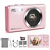 Specification: Digital Camera, LAMA 1080P FHD 44MP Kids Vlogging Camera with 32GB SD Card, 16X Digital Zoom Compact Camera with 2 Batteries, 2.4″ LCD Screen Mini Camera for Kids, Boys, Girls, Teenagers Pink